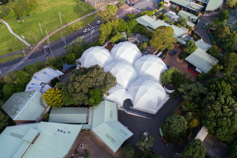 Auckland Zoo’s new multi-purpose exhibition space provides an immersive 1 km2 cluster of domed chambers that offer a spectacular and interactive experience for visitors.