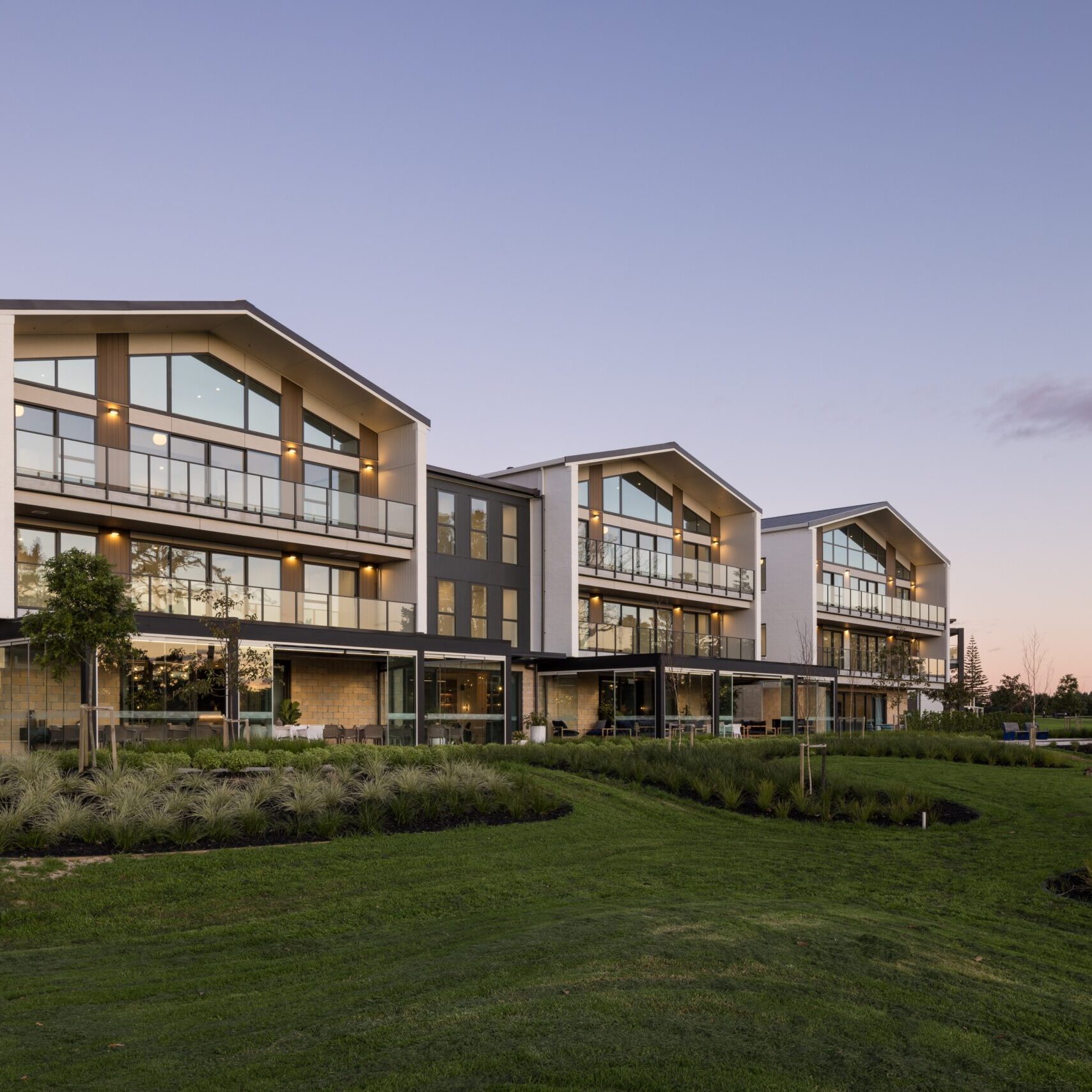 Overlooking Freyberg Park and Browns Bay Bowling Club and within a walking distance from the beach, the Aria Bay retirement village project involved the construction of a 3-level facility with 57 rooms for both standard and dementia care.
